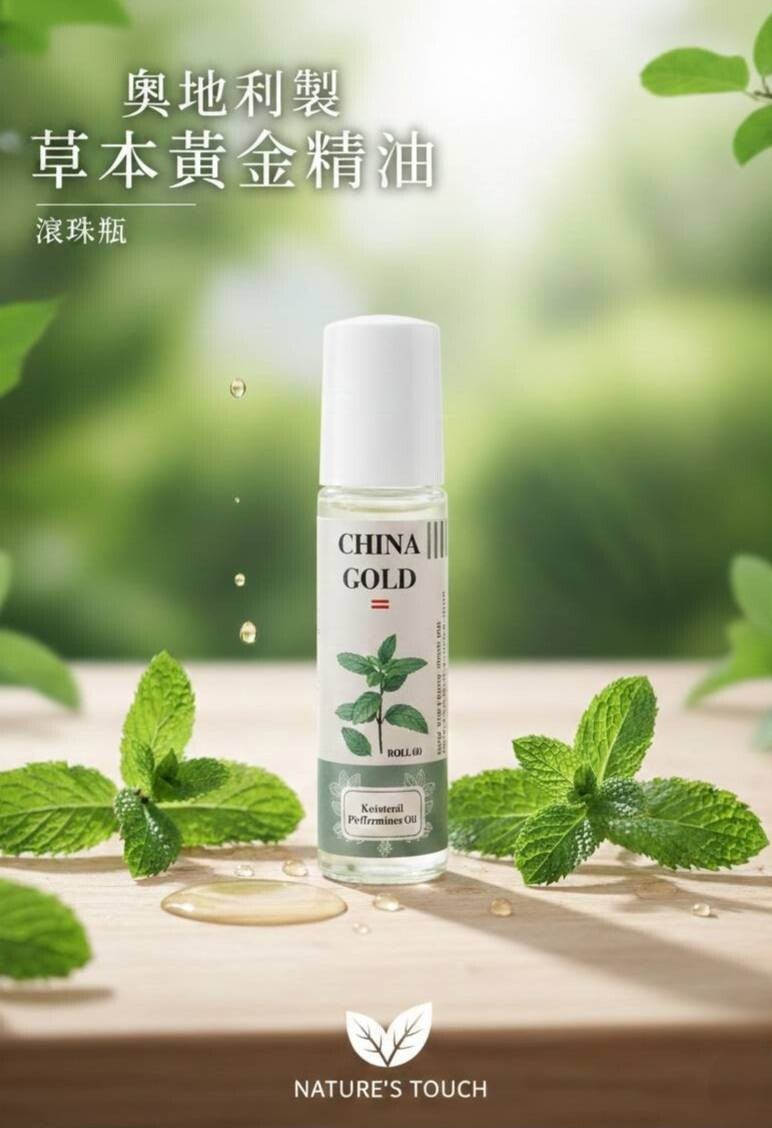 China Gold 薄荷精油採用高品質薄荷葉精粹,經嚴格蒸餾萃取,保留天然芳香與清新成分,在阿爾卑斯山區手工裝瓶。